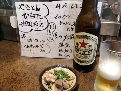 営業自粛中1次はお弁当などのテイクアウトやっていたがすぐにやめてしまい休業してたので心配してました 現在は14時から定休日無しで頑張ってます しきりにビニールがぶら下がり今風ですが仕方ないですね カウンターで1人で飲むことに 客は誰もいません 後客…